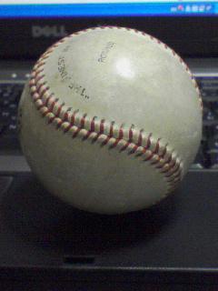 こないだのミクシィの野球会の時に、σ( ̄。 ̄) オイラの大事な新球が誰かに盗まれたからな・・・。まぁ、おそらく、盗まれたというよりかは、誰かがノックの時にそれたボールだと勘違いして、相手チームのボールに混ぜちゃったんだろうけど・・・。