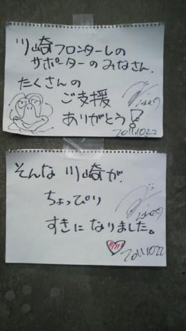 川崎フロンターレのホームゲームは もちろん アウェイにも応援に行きます 東日本大震災後、しばらくの間 全く仕事が無くなり フロンターレの街頭募金活動にも参加しました[d140] 麻生グラウンドにも ちょくちょく出没 観戦時のユニは 2011『挑』の♯12 『AVANTE』 #33シュミット・ダニエル選手以外の全選手(#1~#32)・相馬監督・全コーチ・中山通訳・武田社長・庄子GM・天野春果部長・佐...もっと見る