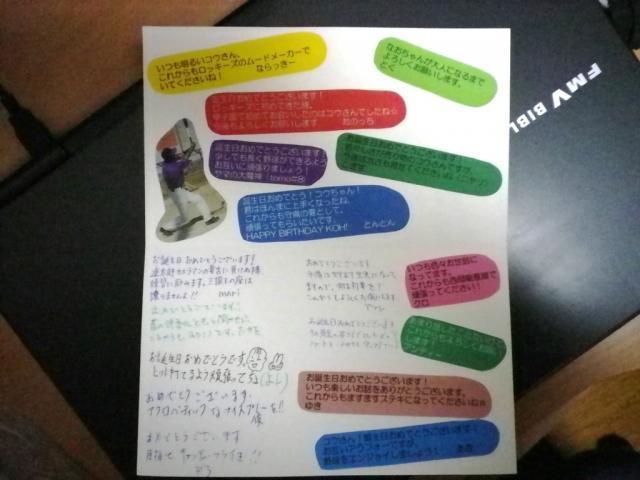 で、ロッキーズのメンバーからバースデー寄せ書きカードを