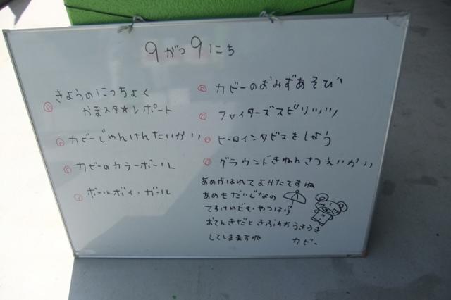 昨日の大雨で夜に千葉市とか道路があちこち冠水したニュースやってたので、今日はグラウンドダメなんじゃないかと思ったんですが、普段どおりでした。きっと職員みんな総出で手入れしたんじゃないかな〜。