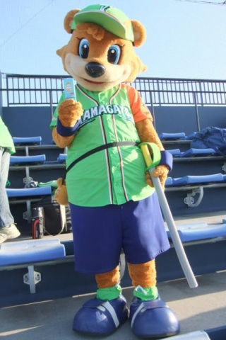 そのカビーに、試合見に来ていたファンのお姉さんからおもちゃの差し入れが………。スポンジ(?)の刀で応援席の人々を斬りまくってました。