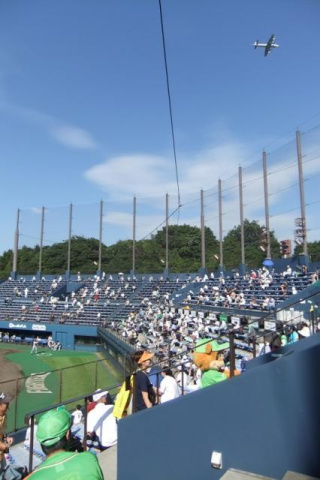 試合中、訓練なのか、自衛隊のプロペラ機が何度も何度もやってきてました。