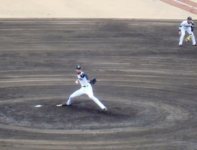 初回、セカンドからの送球をファーストが捕れないエラーでランナーを出した後、上手くつながれてしまい、早々に1点を献上しますが、その後は概ね落ち着いたピッチングが続いていました。それだけに、エラーが惜しまれるところでしたねぇ・・・・・・。
