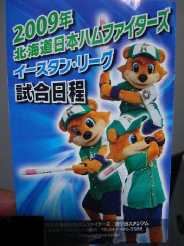 鎌ケ谷では、今シーズンの試合日程表(写真のヤツ)が配布されていました。表紙はもちろん鎌ケ谷マスコットのカビーが。……………昨シーズンは見かけませんでしたが、早々に無くなったのでしょうか???