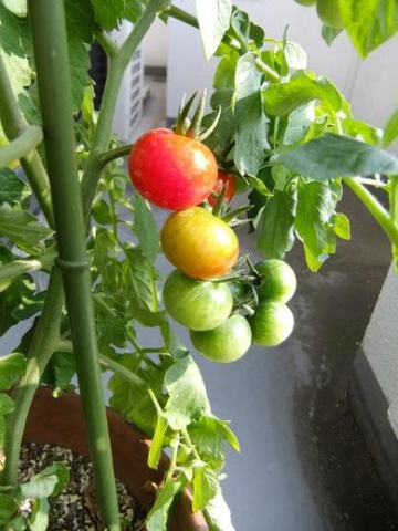 手術してすぐのころ、東松山で買ったミニトマトはたわわに実がなり、ここ数日で赤くなってきました。