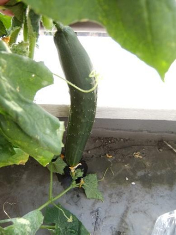 花をつけたきゅうりも1本だけですが実ができて、気づいたらえらくでかくなってました。こっちはもう食べごろでしょうかね〜。