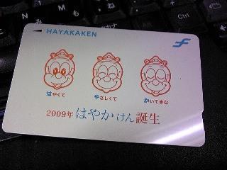 今月7日から福岡の地下鉄で導入されたICカード乗車券「はやかけん」です。Kさんが九州出張の折に買ってきたそうですが、「他に誰か欲しいヤツいるかと思って」いっぱい買ってきたそうです。w