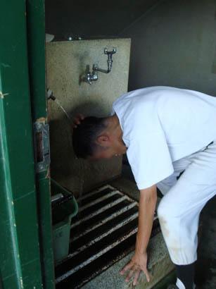 開始40分くらいでやっと休憩。ベンチ横の倉庫に水道があり、そこで頭から水を浴びます。500mlのペットボトルはあっという間に空になりました。