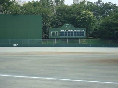 センターなんか110Mと草野球で使うには広すぎるくらいで、さらにはしっかりとしたスコアボードまで設置されています。チームメンバーも「なんだかプロが使う球場みたいだよね…………」。同感です!(ぽちっ