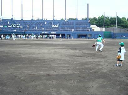 そしてレフトに移動して外野でのフライキャッチに。これがまたホームベースから遠いんですよねー。なのにきっちりレフト方向に打ってくるのはさすがにプロだからでしょうか………。ちなみに自分の番ではありませんが、フライのはずが、そのままレフトスタンドへ…………。さすがにそれを取れ!って言われても無理ですよー。(笑汗