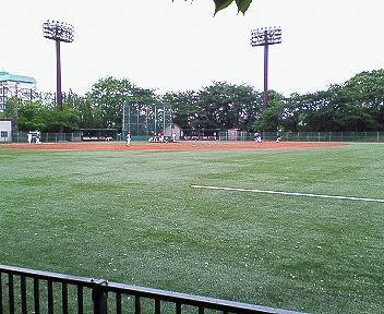 小豆沢公園到着。見れば、2面あるグラウンド双方とも11時からの枠を使ったチームは試合やっているじゃないですかー!(>_<