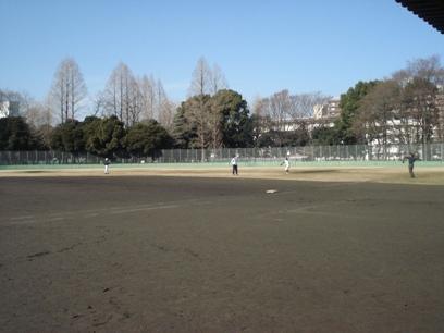 サード側はベンチ前に雪が残ってるくらい、日当たりが悪いのか、サードベース付近はぬかるみと化してました。ホームベースあたりもちょっとグチャグチャでしたが、それしきでへこたれるボクらのチームではありません!(笑