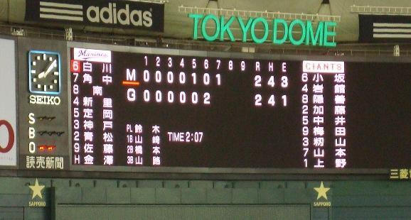 火曜日は東京ドームへイースタンリーグ:ジャイアンツ対マリーンズ戦を観にいきました。