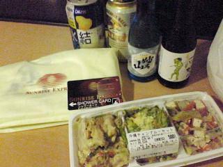 東京駅のグランスタでつまみと酒調達。麻生某似の車掌さんからシャワーカードとタオル購入で、ミニロビーにて一人宴会開始。完璧。