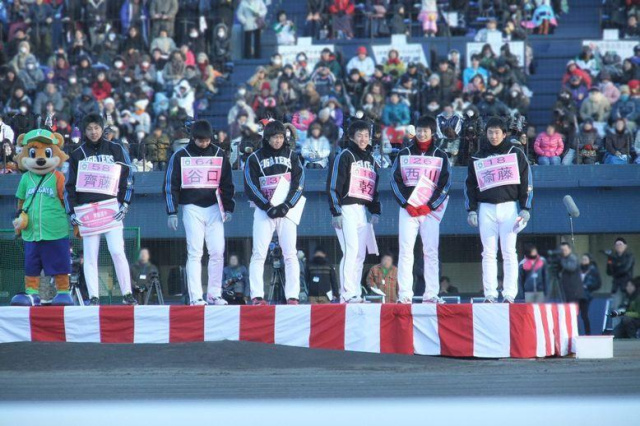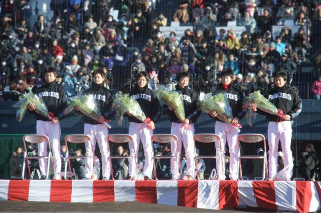 16日日曜日は午前中練習試合のあと、ファイターズの新入団選手歓迎式典&交流会に鎌ヶ谷スタジアムへ行ってきました。