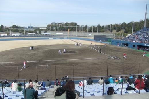 キャンプ前までドラ1の斎藤選手目当てのお客さんでごった返していた鎌ヶ谷も、この日はまぁこんなもんかなぁってお客さんの入りでスタート。