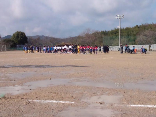 一日目は雪混じりの雨の中、みんな凍えながら頑張っていました。途中、雨がひどくなり20分試合に変更となる事態に・・・。4試合をこなして宿へ。