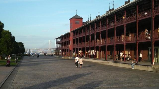 ベイブリッジをバックにした赤レンガ倉庫を斜め45度からとってみました!(誰?このカップル)