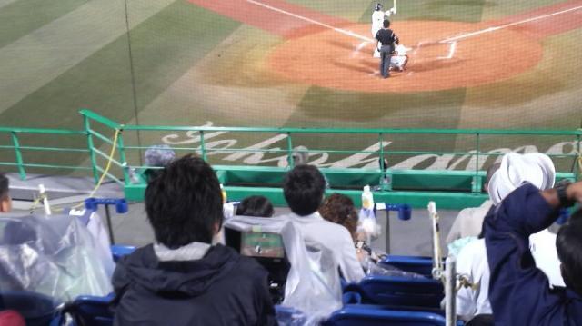 バックネット裏のとても見やすい席で、近くにはモニターもあり、