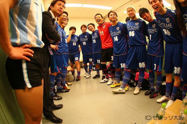 ユニフォームに着替えてロッカールームで円陣!