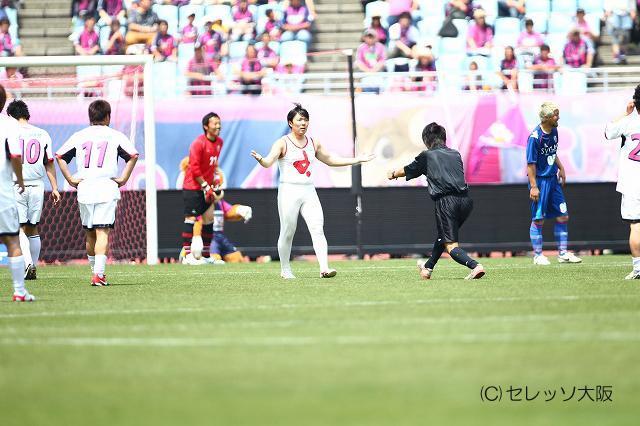 ボールを持ったら男に変貌(?)
