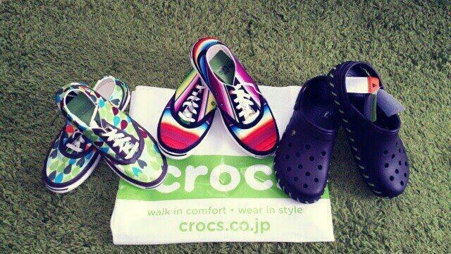 カラフルは2足のシューズは雑巾の用に絞って乾かすことができるので海やBBQに重宝しそう。早く履きたいなぁ~