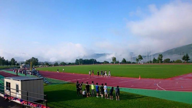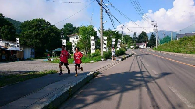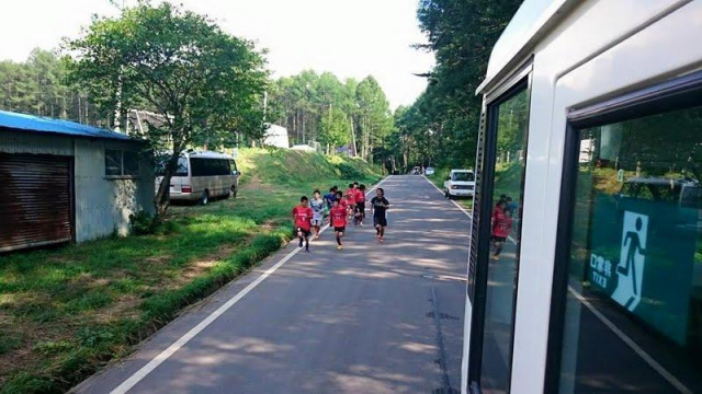 2人1組に分かれ1人が走っている時、もう1人は周回を数え励ましたり、鼓舞したり。