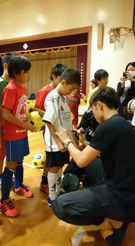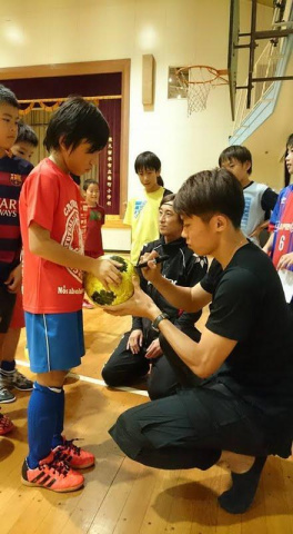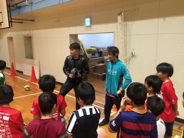 と言う話をFC東京の太田宏介選手に話をしたら、それならばバスの中でお楽しみ抽選会にでも使ってください!と私物をスクールまで持ってきてくれました!
