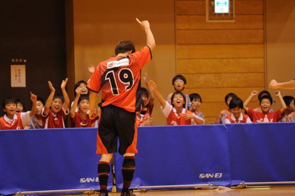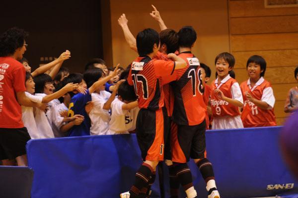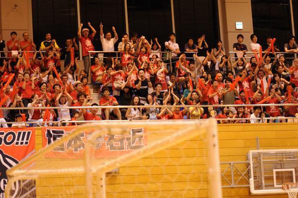 狭い東久留米スポーツセンターのスタンドは立ち見が出るほどの超満員!そしてこの日は地元の子どもや親御さん達が1階のエキサイティングシートに約200人!!
