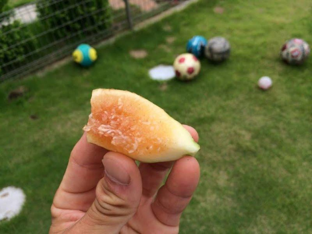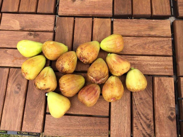 もうすでに鳥たちが朝早くからイチジクを狙いに来ているので、色が赤くなるちょっと手前で収穫~