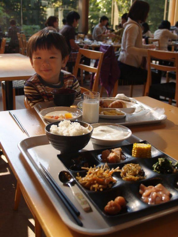 朝食は森の中のレストランで朝食。