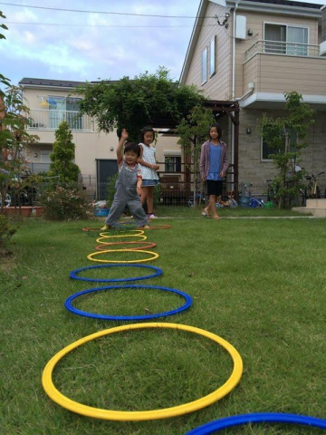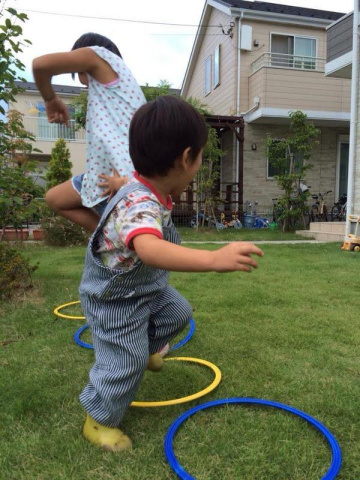 子どもたちは庭でひと遊び。
