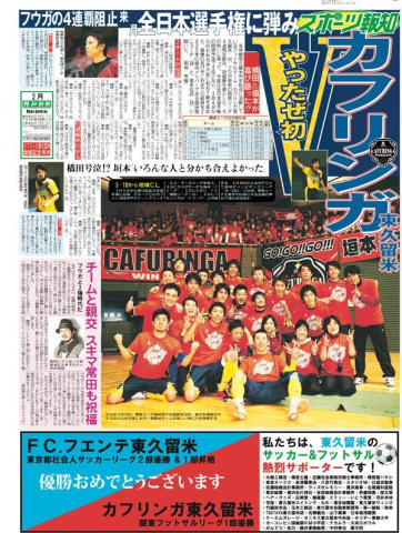 カフリンガ東久留米関東リーグ優勝記念&全日本選手権出場、FCフエンテ東久留米1部昇格のお祝いを記念しての号外が配布されましたぁ~!!