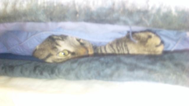 寒さに弱いトラッキーは、畳んであるふとんに潜り込んで一日中寝てました。