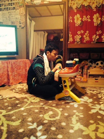 今からやまさんちで、前ちゃんが福岡から持ってきてくれたもつを使ってもつ鍋をします(^.^)
