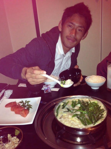 やま中でもつ鍋食べてきました(^�!^)