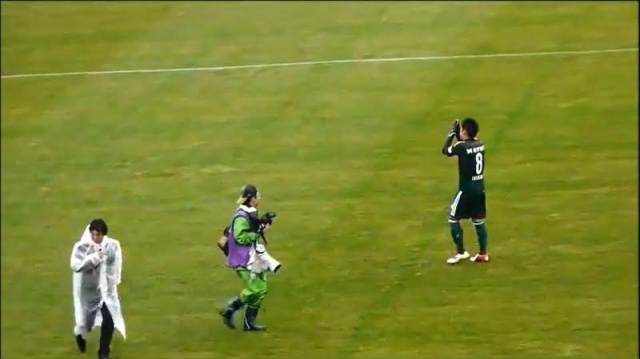 試合後、湘南のサポーターに挨拶し、チャントを歌ってもらい