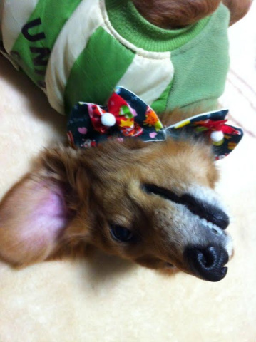 可愛いクリスマスリボンを付けてもらい