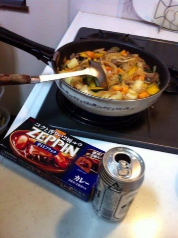 でカレー作りを…