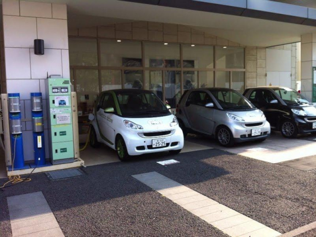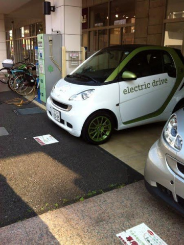 カーシェアリング発見。こんなクルマなら利用したいな( ̄▽ ̄)やはり、時代は電気自動車ですかね?