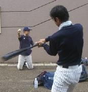 キャッチボール終了後は、ストライクゾーンを9分割してそれぞれのコースを3スイングの素振り。