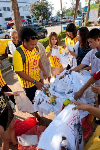 ”1枚100Baht!売上金は日本に寄付します!”的な事を書いたボードを掲げて、みんなで取り組んでくれていました。