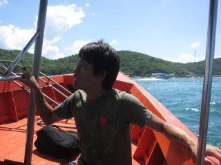 船で興奮している床井。