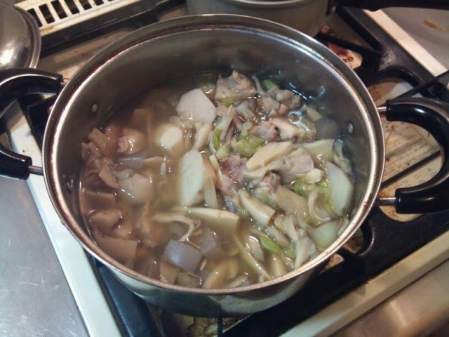 里芋・牛バラ肉・まいたけ・ねぎ・こんにゃく。