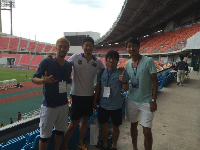 右から…Sriracha FCの大ちゃん、言わずと知れたタイのスター猿ちゃん(現在はSingh Tarua FC)、北九州で一緒にやっていた現在Koratの聡、そして僕ね。