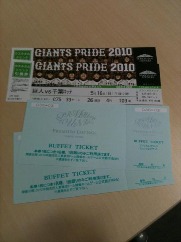 巨人 vs 千葉ロッテの交流戦チケットを入手しちゃいました(^^)