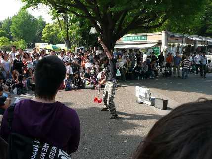 まず上野公園へ向かったところ大道芸人がジャグリングというものをやっており観客を魅了しておりました[s431]