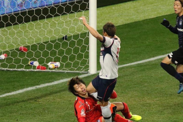 ガンバ大阪のGK東口選手がFC東京のFW大久保選手と接触プレーにより