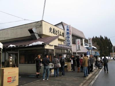 たくさんのお客さんが三角あぶらあげを食べていました。