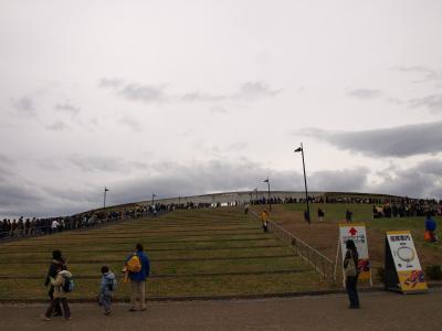 スタジアムの周りが山みたいになっていて、入り口までの道が
